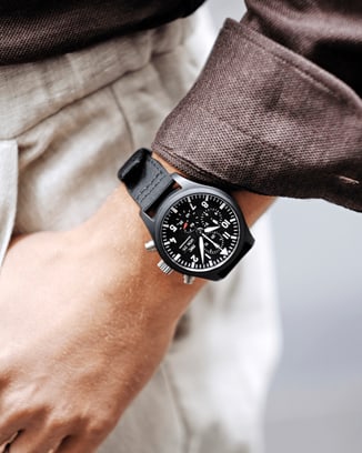 深遂的哑光黑色,灵感来自现代喷气式战斗机的机体涂层及技术部件。IWC万国表与Pantone®彩通共同将此颜色命名为“IWC Jet Black(IWC万国表哑黑)”。