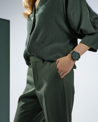 飞行员TOP GUN海军空战部队计时腕表“森林”特别版以其非凡瞩目的单色设计令人印象深刻。腕表采精心制备的色彩工程学设计,从表盘到指针,再到镶嵌织物的橡胶表带和夜光材料,所有部件都与全新研制的陶瓷颜色完美搭配。