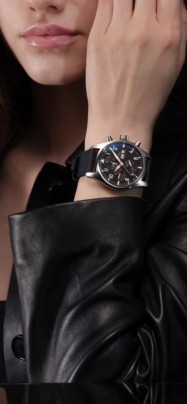 飞行员系列计时腕表APXGP致敬电影《F1™:狂飙飞车》片中虚构的车队APXGP,采用黑色、金色、白色元素设计。