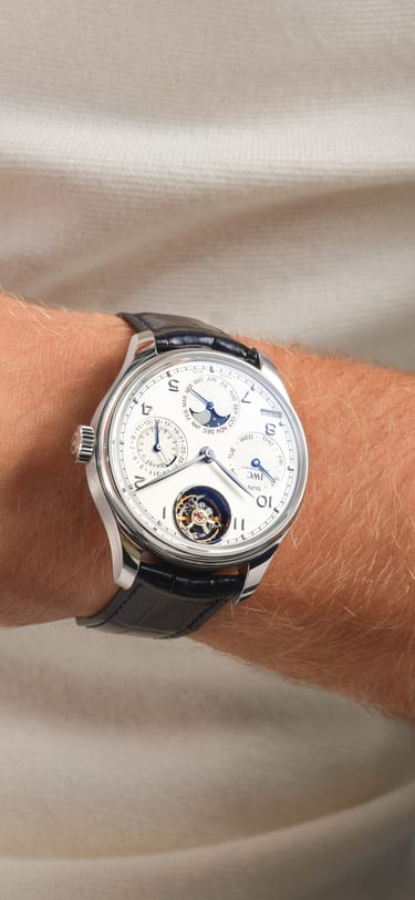 IWC葡萄牙系列万年历陀飞轮腕表于方寸间融合两大复杂功能。